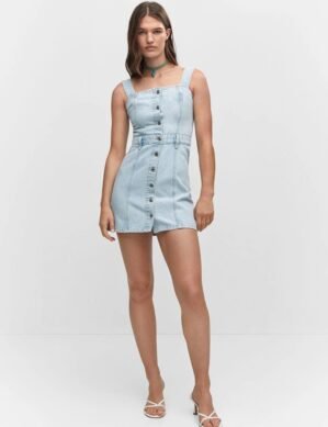 Lumion Mango Button Denim Dress Light Blue Minidress. (L)