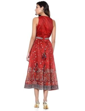 Auralis BIBA Women Green & Red Poly Viscose Straight Kurta Slim Pant Suit Set. (L)