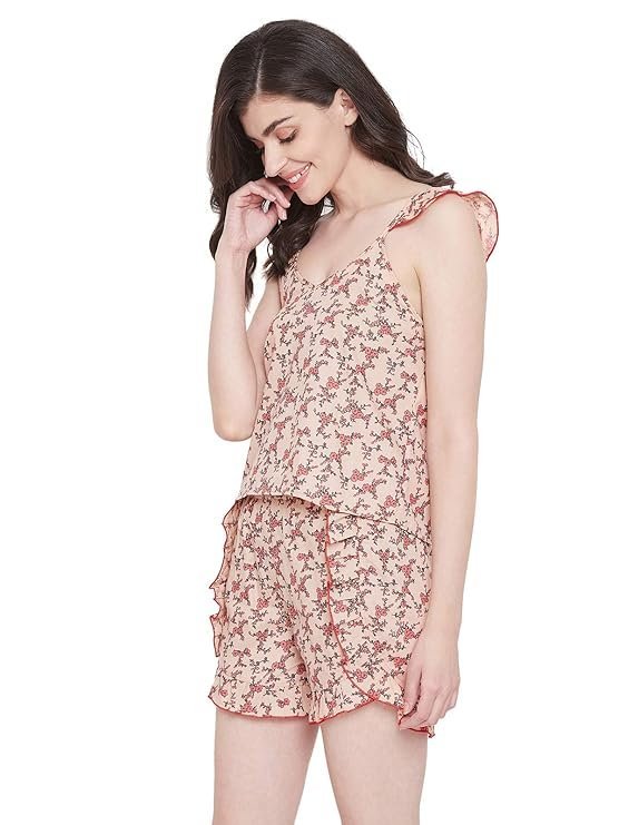 Elaro Clovia Women Pajama Set Top & Shorts Set. (L)