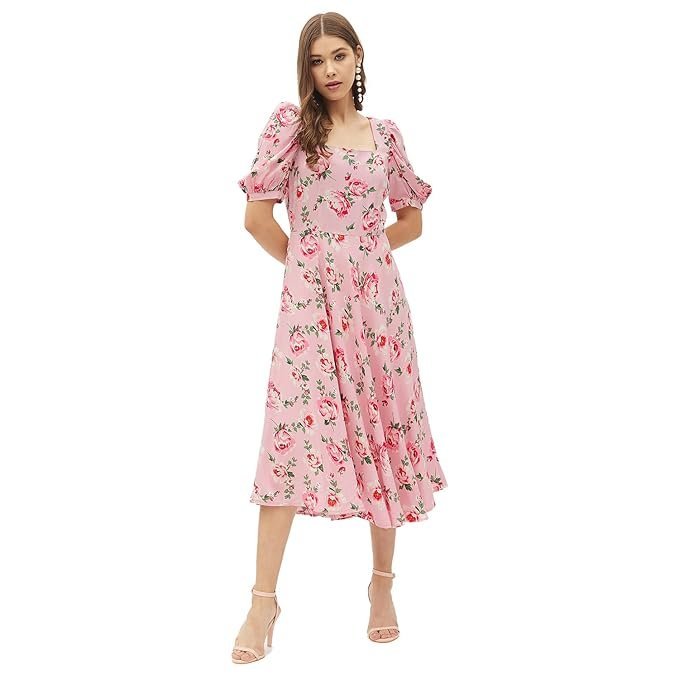 Elaro Harpa Women’s Rayon Fit and Flare Calf Length Casual Dress. (M)