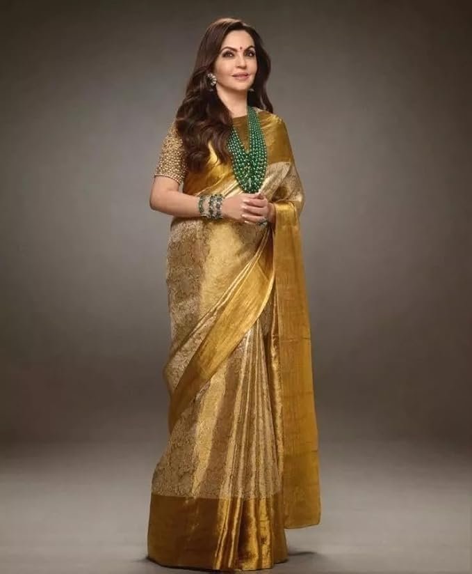 Elaro Kanjivaram Soft Saree Weaving Full Broket Traditional Banarasi Sarees For Women’s Golden Double Kanchi Border With Blouse Piece for Festival, Wedding, Party, Anniversary Wear (S)