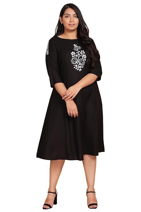 Next-Gen Kraftzon Lastinch Women’s Solid Black Embroidered Midi Dress (XXL) crafted for comfort, durability, and modern appeal.