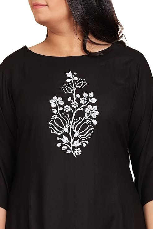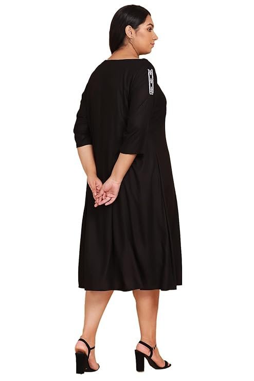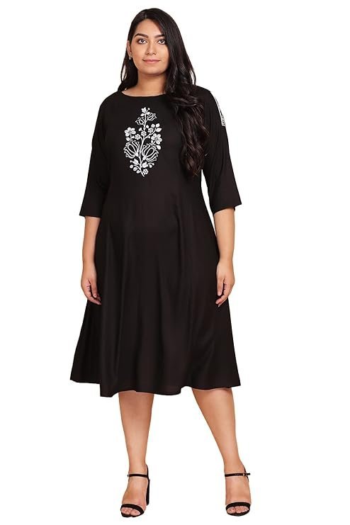 Kraftzon Lastinch Women’s Solid Black Embroidered Midi Dress (XXL)