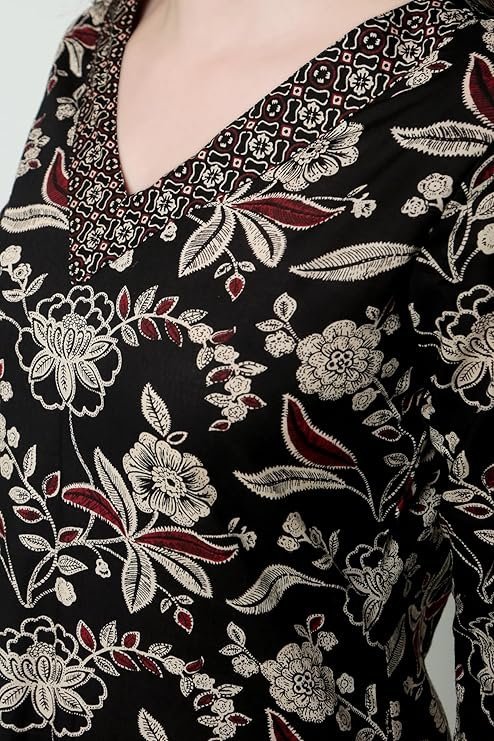 Nexora Arayna Women’s Cotton Block Printed Straight Kurta with Palazzo Pant. (L)