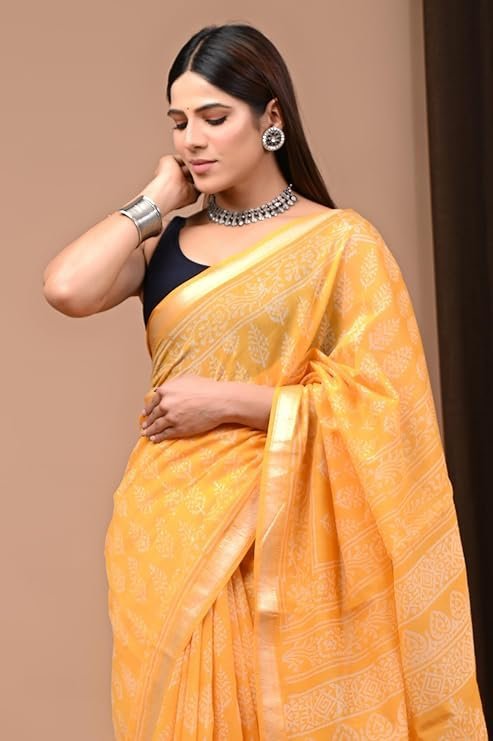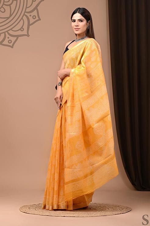 Premium Nexora Eddika Hand Block Printed Pure Chanderi Silk Saree | Chanderi Silk Saree for Women (L) crafted for comfort, durability, and modern appeal.
