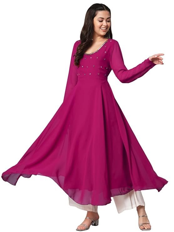 Modern Nexora PH POSHAKHUB Women Georgette Hand Embroidery Round Neck Kurta. (L) crafted for comfort, durability, and modern appeal.