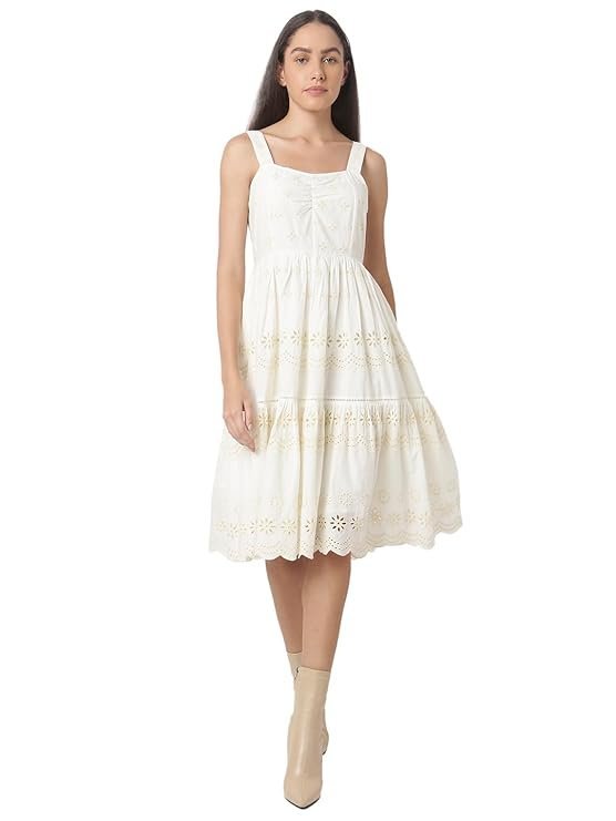 Nexora VERO MODA Women’s Cotton Fit and Flare Knee-Length Dress (S)