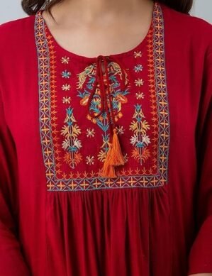 Kraftzon Woman Pink Glitter Printed Embroidered Straight Kurta Set. (L)