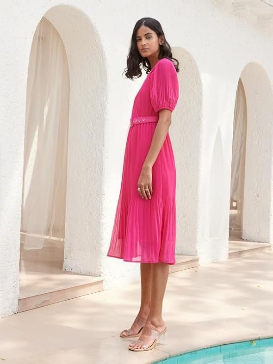 Experience elegance and quality with Vantico Salt Attire Women’s Solid V-Neck Fit and Flare Midi Dress with Elbow Length Sleeves – Georgette & Chiffon Polyester Fabric, Additional Camisole Included, Elegant Workwear Dress, Made in India (XL). Designed using premium materials and fine craftsmanship, it combines timeless style with all-day comfort. Ideal for modern fashion lovers looking for excellence.