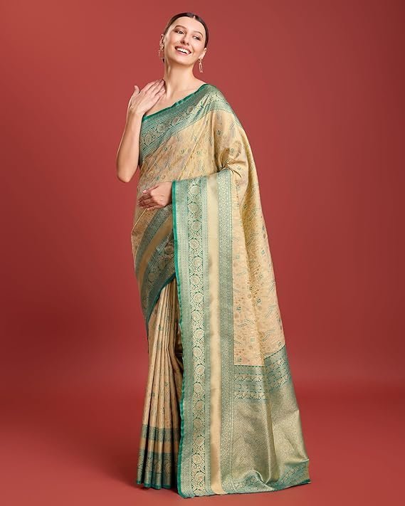 Eco-Friendly Vantico Women’s Glamour and Tradition With This Zari Woven Banarasi Tissue Silk Saree Comes With Unstitched Blouse Piece (XL) crafted for comfort, durability, and modern appeal.