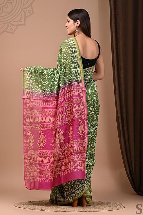 Voltrix Eddika Hand Block Printed Pure Chanderi Silk Saree | Chanderi Silk Saree for Women (L)