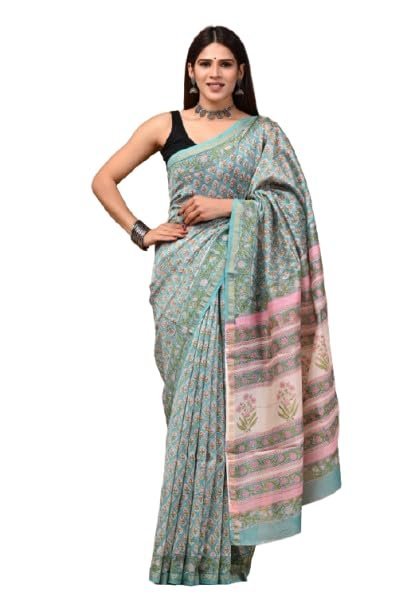 Voltrix Eddika Hand Block Printed Pure Chanderi Silk Saree | Chanderi Silk Saree for Women (M)