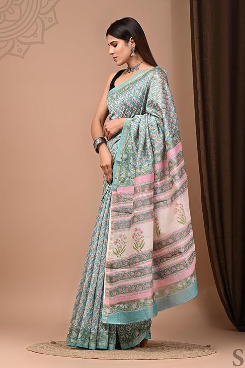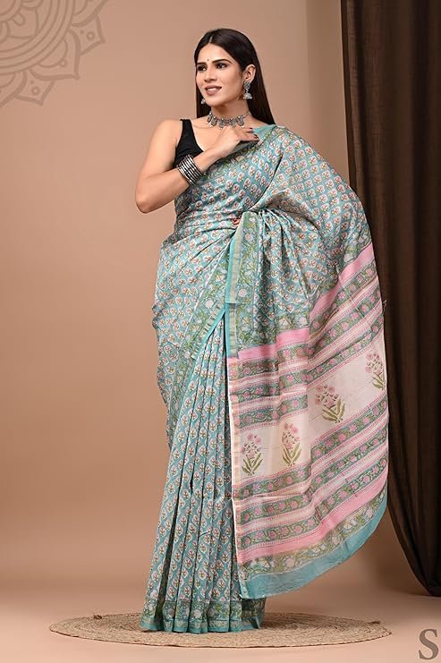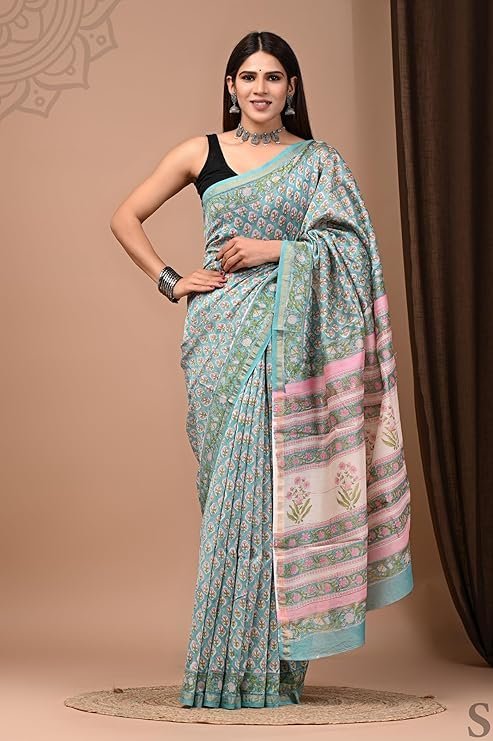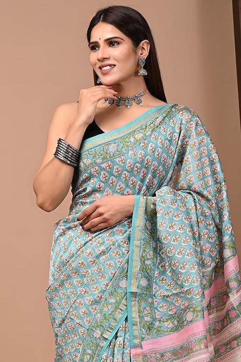 Premium Voltrix Eddika Hand Block Printed Pure Chanderi Silk Saree | Chanderi Silk Saree for Women (M) crafted for comfort, durability, and modern appeal.