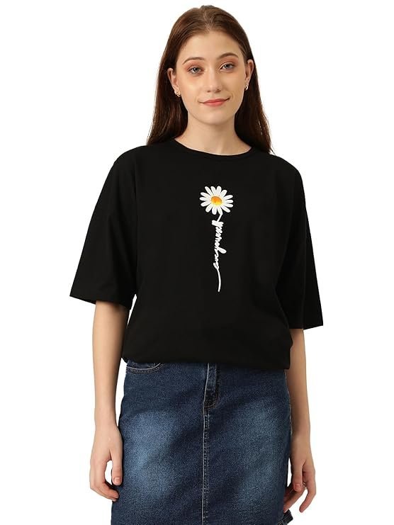 Eco-Friendly Voltrix KOTTY Women’s Cotton Blend Black Printed Oversized T-Shirts (XL) crafted for comfort, durability, and modern appeal.
