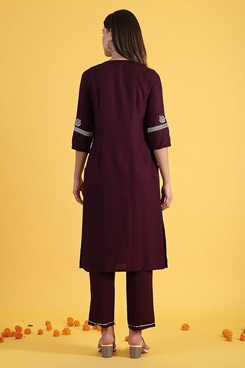 High-Performance Voltrix W for Woman Purple Embroidered Straight Kurta and Straight Pants Set. (XXL) crafted for comfort, durability, and modern appeal.