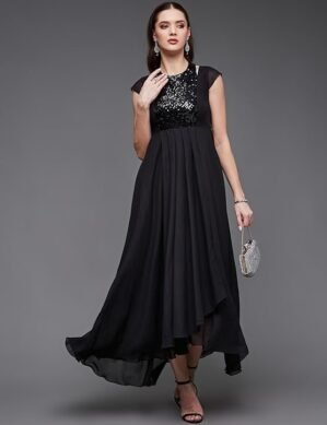 Eco-Friendly Kraftzon Miss Chase Women’s Halter Neck Cap Sleeve Solid Pleated Embellished Georgette Maxi Dress with Pockets (XXL) crafted for comfort, durability, and modern appeal.