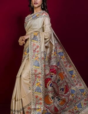 Premium Zenova Bengal looms India Hand Paint Madhubani on Soft Tussar Silk Saree for Women (XL) crafted for comfort, durability, and modern appeal.