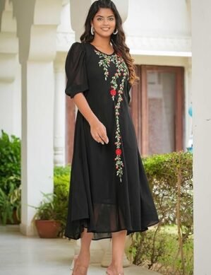 Modern Zenova Yash Gallery Women’s Floral Embroidered Anarkali Midi Dress. (L) crafted for comfort, durability, and modern appeal.